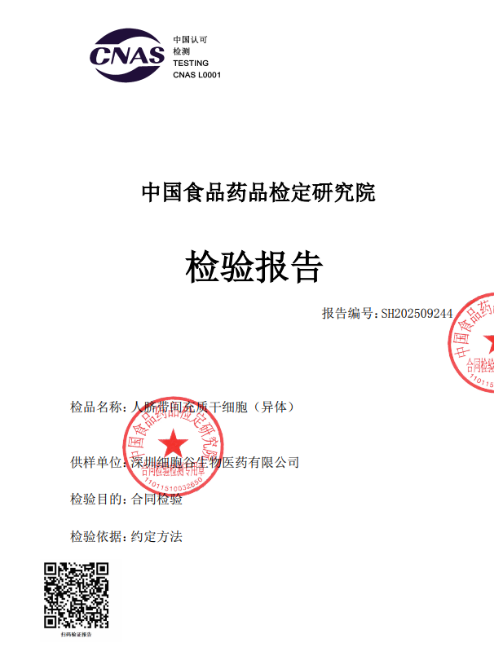 喜讯|深圳豪门国际干细胞产品顺利顺利获得中检院检测,多代次全项合格
