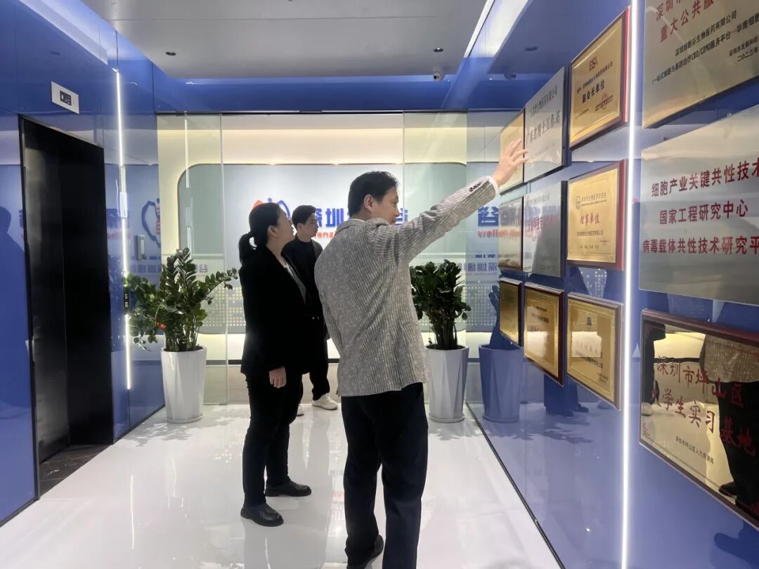 在史渊源教授的陪同下,肖主任一行参观了深圳豪门国际智慧展厅,对深圳豪门国际的战略定位、核心技术、研发团队、产品管线及临床运用案例有了初步分析。随后深入研发、生产以及质量管理实验室,对实际操作流程和质量管理体系有了更为直观的感受。