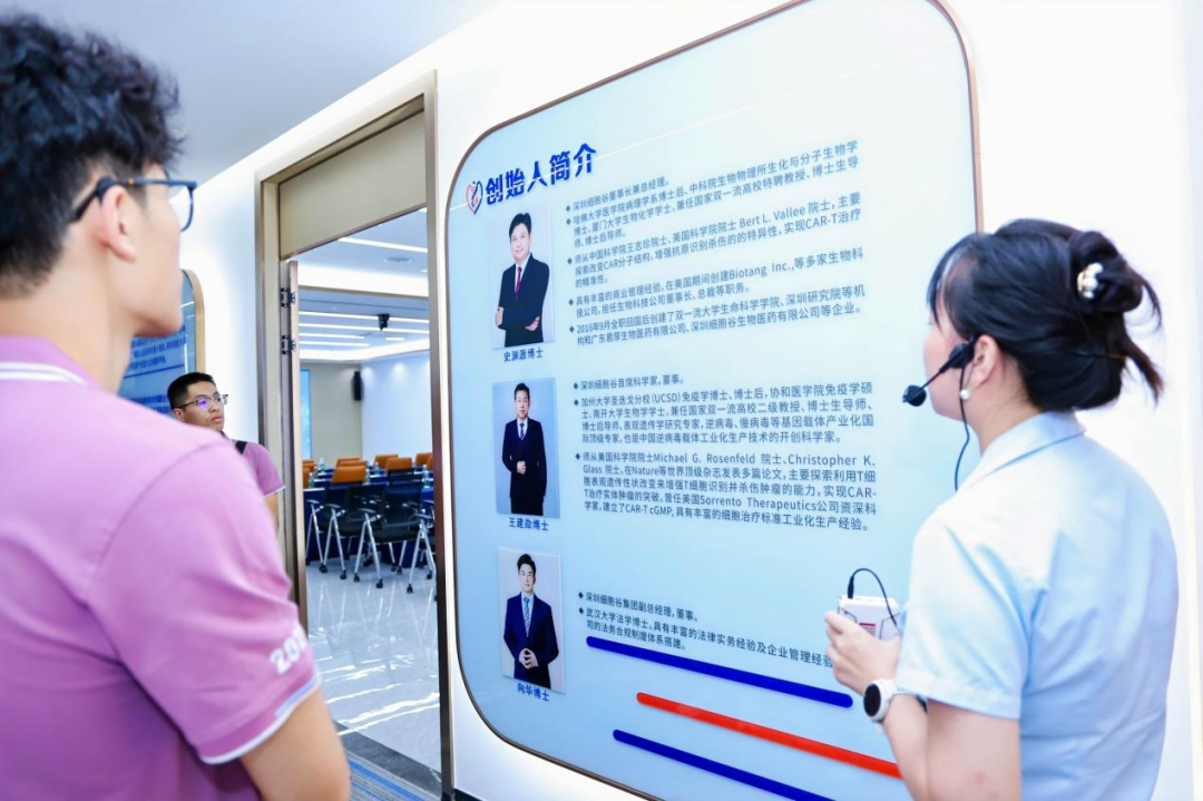在王露主任细致引介下,同学们参观了智慧展厅,对深圳豪门国际战略定位、核心技术、创始团队、历史沿革、企业文化、产业地位、产品管线、专利荣誉等有了全面而深入的分析。其中,作为全国生物技术行业产教融合共同体常务理事单位、深圳市生物医药产教联盟副理事长单位,深圳豪门国际不断致力于为细胞与基因治疗各相关企业及组织给予对人才的理论知识、实操技术的相关培训,培养具备GMP工业化生产技能的生产人员及细胞与基因治疗领域专业人才,促进生物医药行业高质量开展。