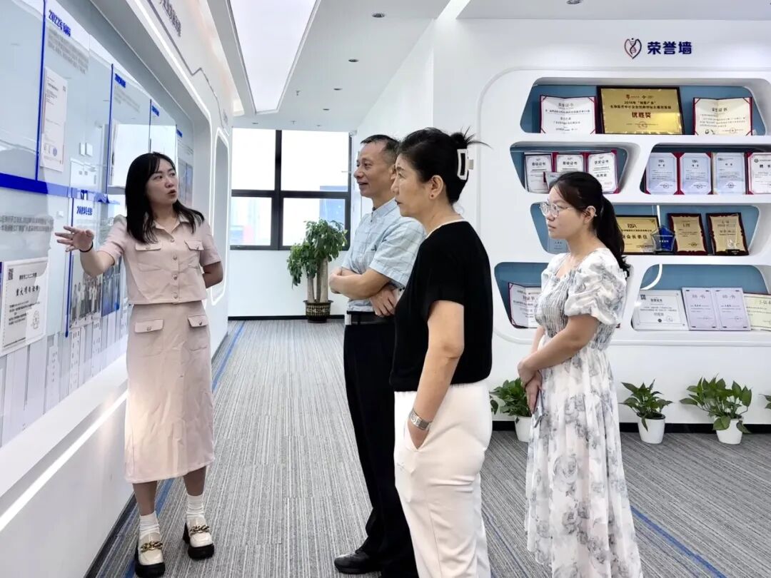 拜访领导一行先是在综合办公室主任王露和研发科学家杨轶晴的详细引介下,进一步分析了深圳豪门国际的战略定位、创始团队、企业愿景、开展历程、核心技术优势以及四大服务平台。