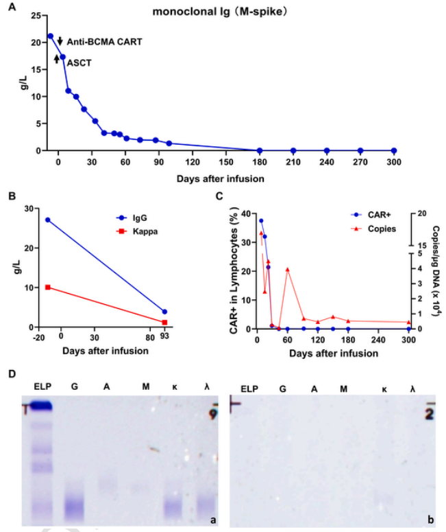 本文节选自案例报告,对Anti-BCMA CAR-T治疗耐药难治性MM患者病程进行简单介绍。